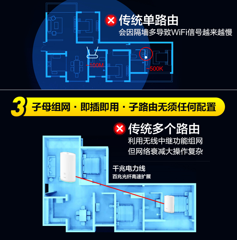 华为Q2千兆子母无线路由器全千兆双端口大户型别墅穿墙光纤宽带家用企业智能双频高速wifi穿墙王